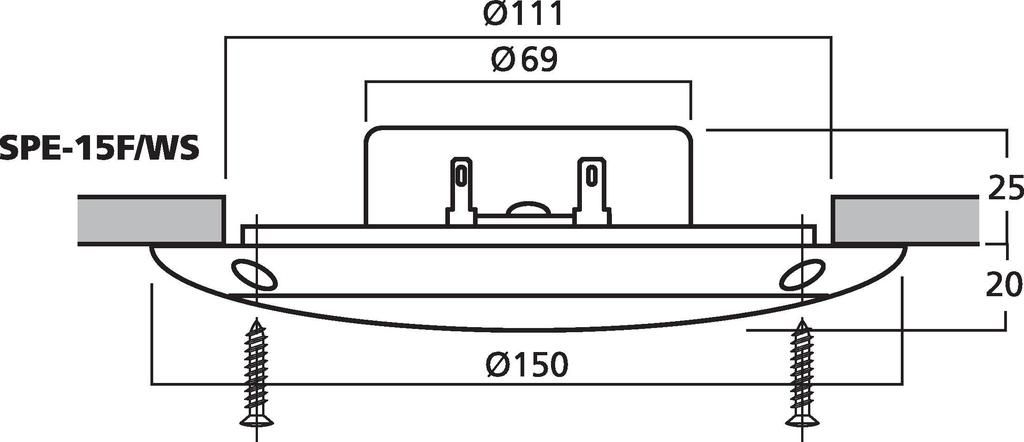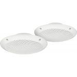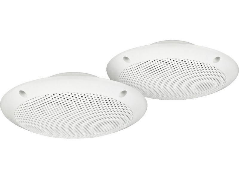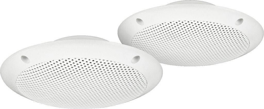 Pair of weatherproof flush-mount PA speakers, 15 W, with UV-stabilised plastic housing, super slimline design. Versatile use for PA, car hi-fi, terrace, boat, swimming pool areas. Weatherproof polypropylene spaker cone Tested according to ASTM B1...