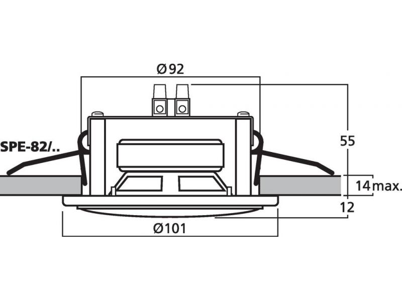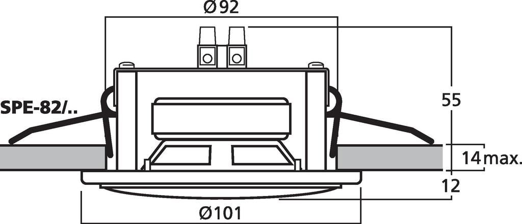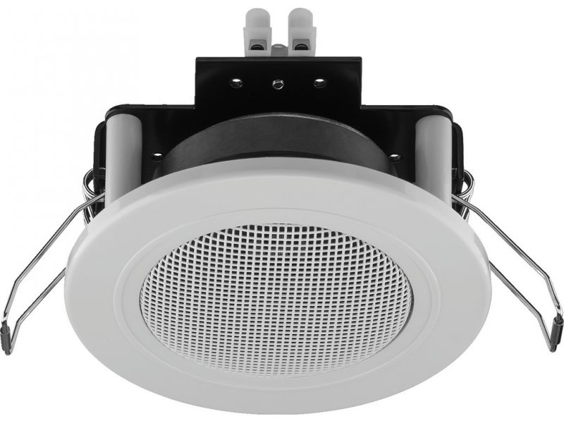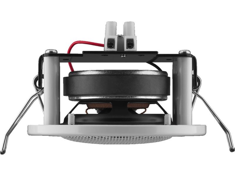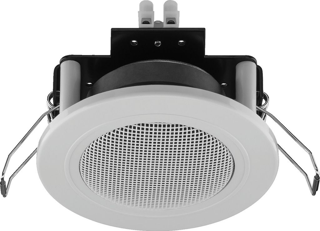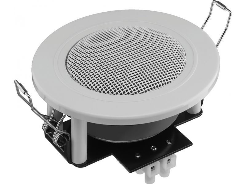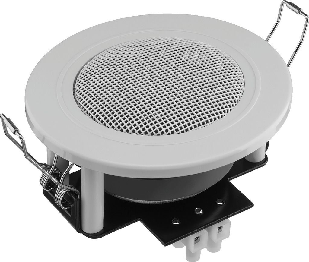 Small flush-mount speaker, 6 W, 4 Ω White (WS) cover Similar design to standard flush-mounted halogen lights Suitable for speech and background music, very consistent frequency response Quick-mounting facility Manufacturer information: MONACOR...