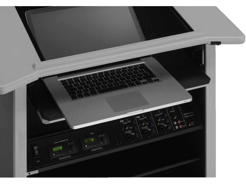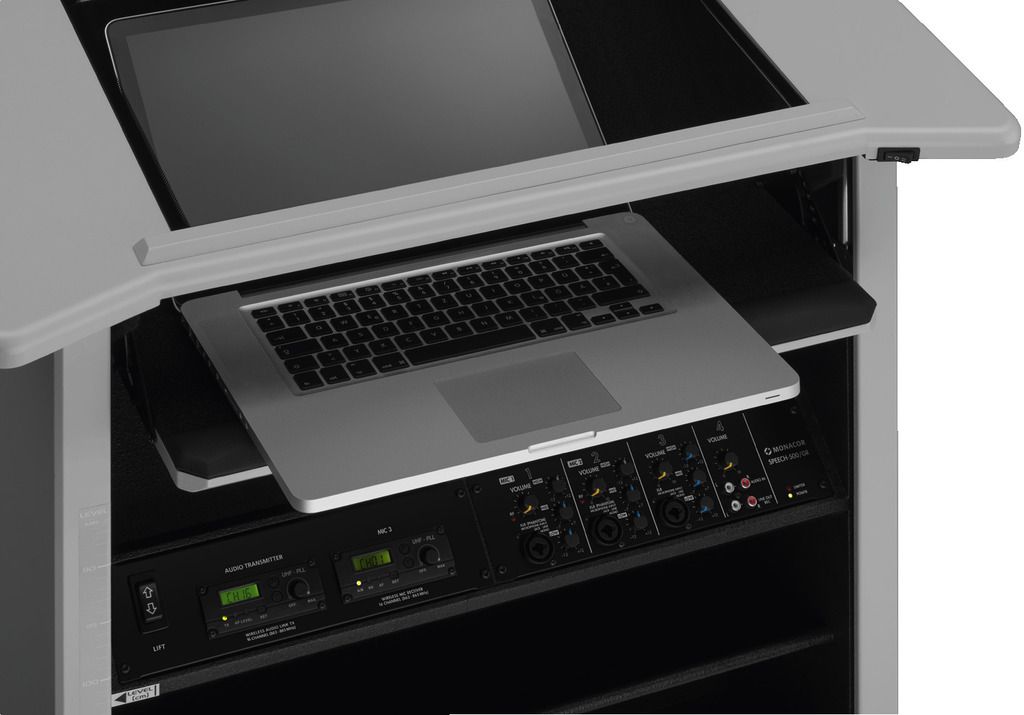 The SPEECH-500 is a professional solution which is equipped with innovative technology and suitable for music transmissions of high requirements. The lectern features a variable electric height adjustment. A laptop can space-savingly be accommodated...
