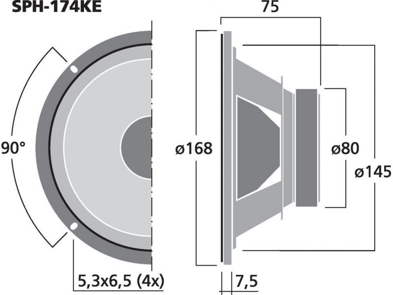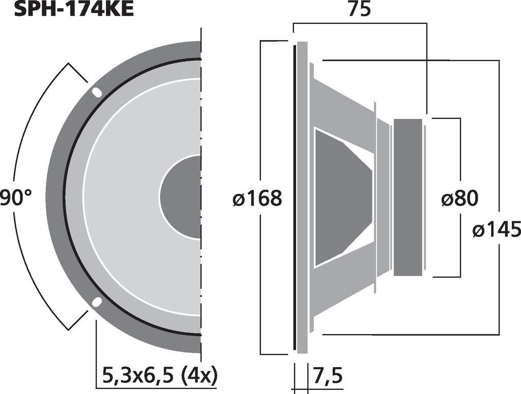 Hi-fi bass-midrange speaker, 50 W, 8 Ω Hi-fi bass-midrange speaker of classic design High-quality Kevlar cone Robust sheet steel basket with 4-hole screw connection Very linear frequency response For universal use in closed, bass-reflex and TML cabin...