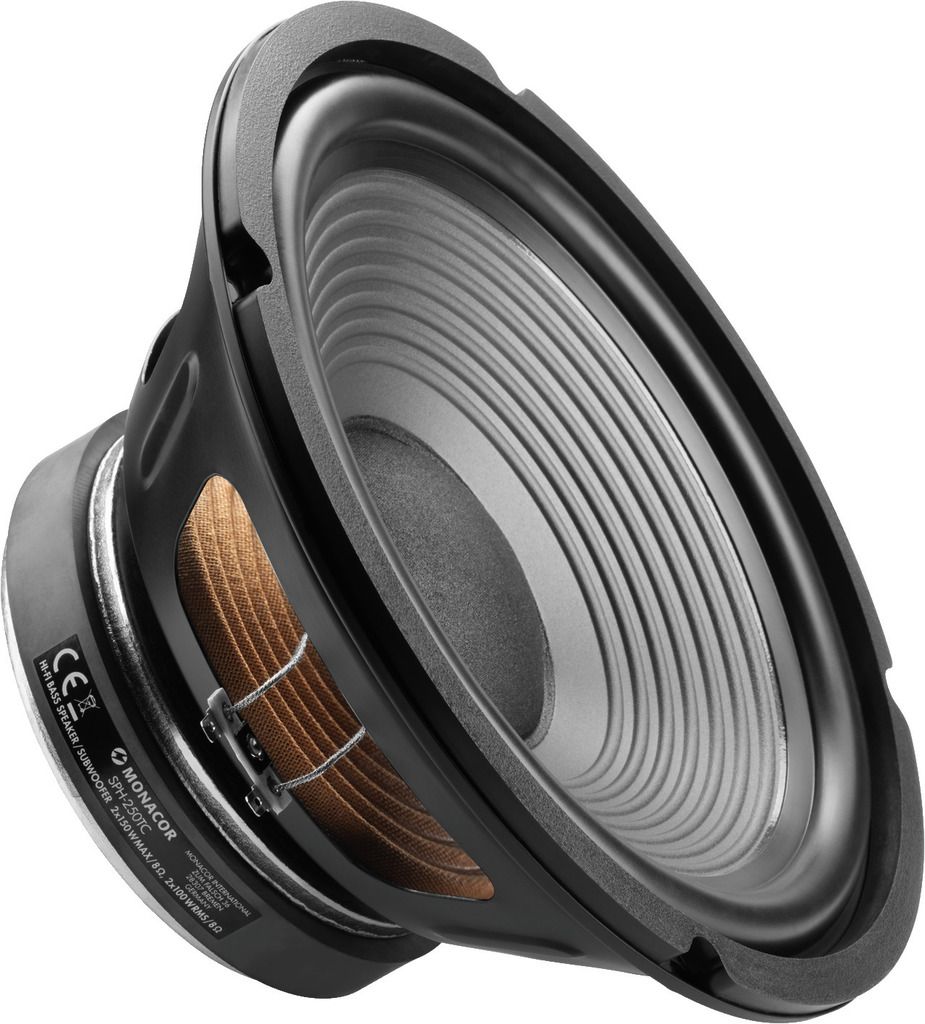 Hi-fi bass speaker and subwoofer, 2 x 100 W, 2 x 8 Ω Stabilised polypropylene cone Dual voice coil Perfect parameters for a very deep bass reproduction in small bass-reflex cabinets and band-pass cabinets For any bass application in hi-fi, home cinem...