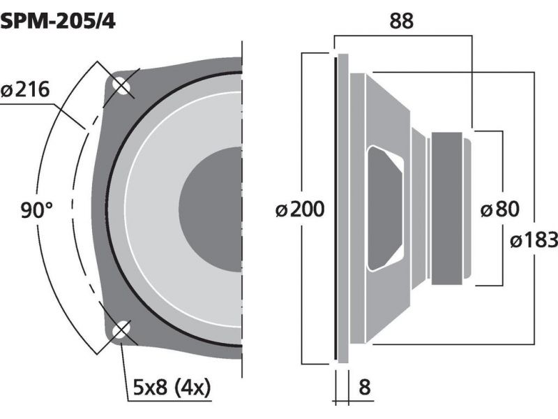 Hi-fi bass-midrange speakers, 70 W, 8 Ω (/8) and 4 Ω (/4) Excellent replacement speakers of the same quality as from the original equipment manufacturer Coated low-resonance paper cone Long-term stable rubber surround To be used preferably in closed...