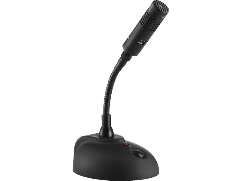 Gooseneck desktop microphone 1.25 cm (½") high-quality gold-plated condenser cartridge Low cut switch (80 Hz) 10 dB attenuation, switchable Low-noise ON/OFF button Power LED XLR output Manufacturer information: JTS PROFESSIONAL CO., LTD.No. 148...