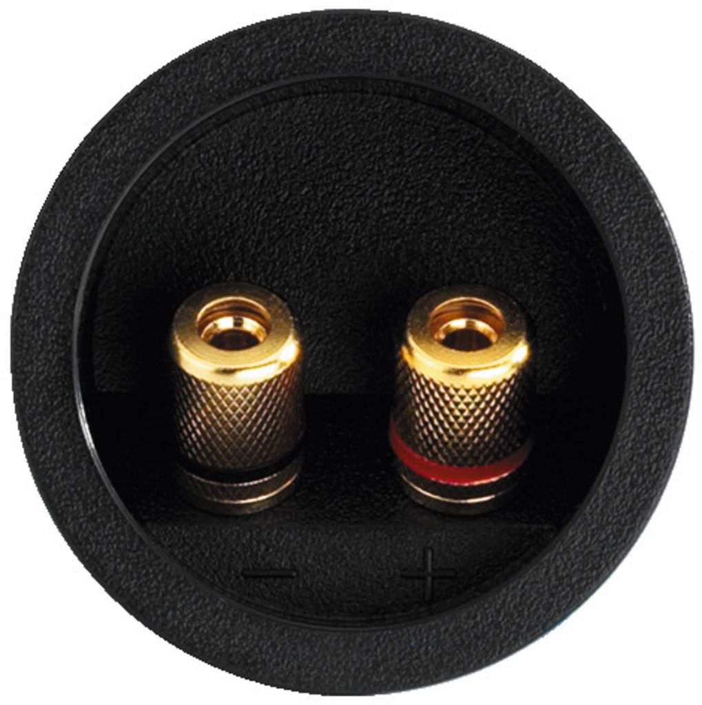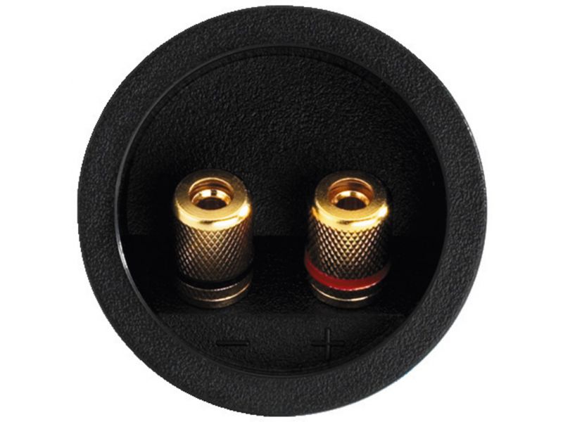 Speaker terminal For pressing in and adhesive bonding With gold-plated contacts For screwing (Ø 5 mm) as well as for 4 mm banana plugs Mounting diameter: Ø 48.5 mm Manufacturer information: MONACOR INTERNATIONAL GmbH & Co. KGKonsul-Smidt-Str. 6...