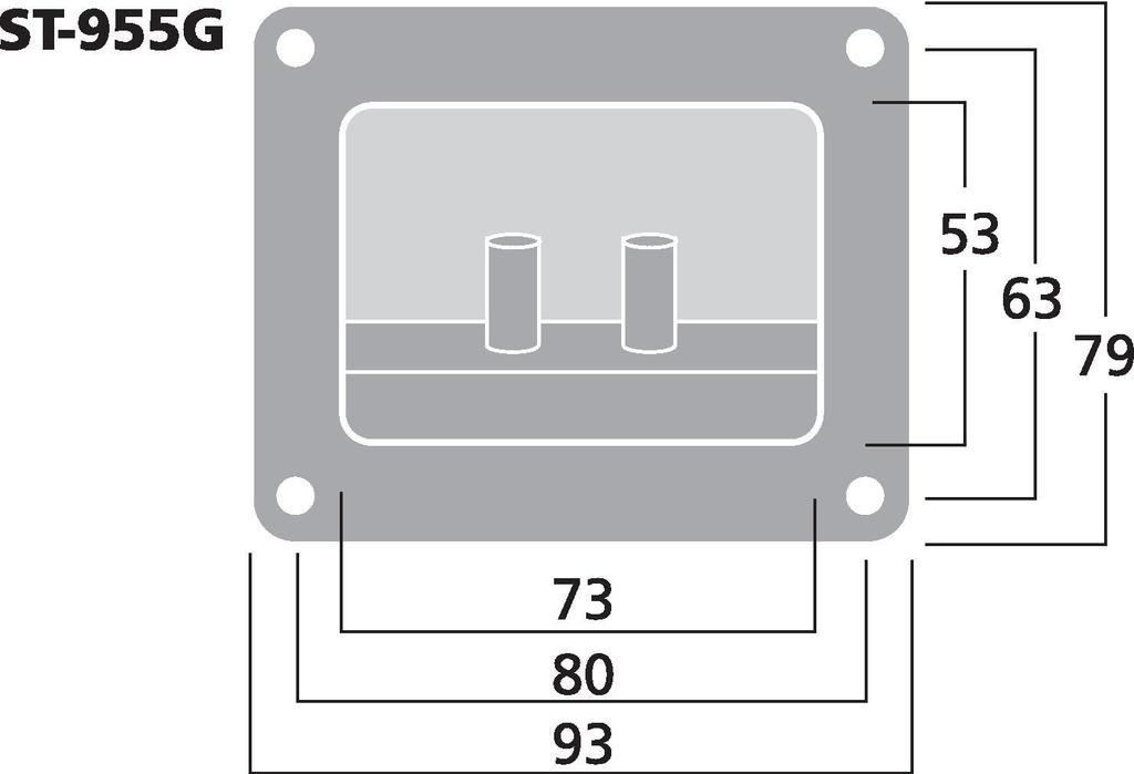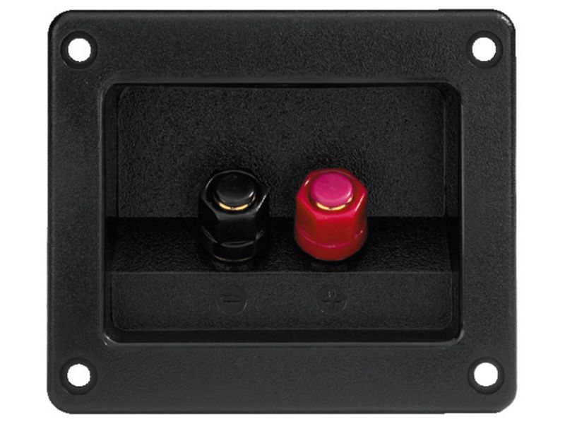 Speaker terminal With gold-plated contacts Plastic covers For screwing as well as for 4 mm banana plugs Mounting cutout: 73 x 53 mm Manufacturer information: MONACOR INTERNATIONAL GmbH & Co. KGKonsul-Smidt-Str. 6828217 BremenGermanyinfo@monacor...