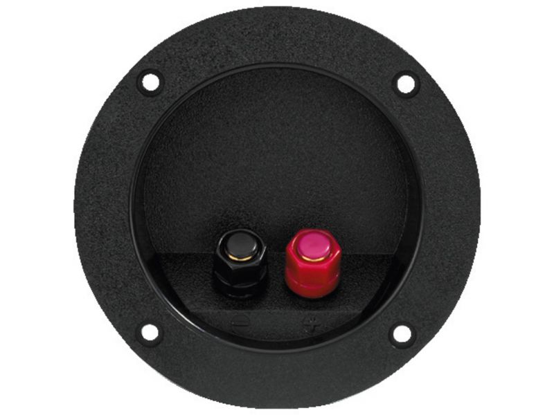 Speaker terminal With gold-plated contacts Plastic covers For screwing as well as for 4 mm banana plugs Mounting cutout: Ø 76.5 mm Manufacturer information: MONACOR INTERNATIONAL GmbH & Co. KGKonsul-Smidt-Str. 6828217 BremenGermanyinfo@monacor....