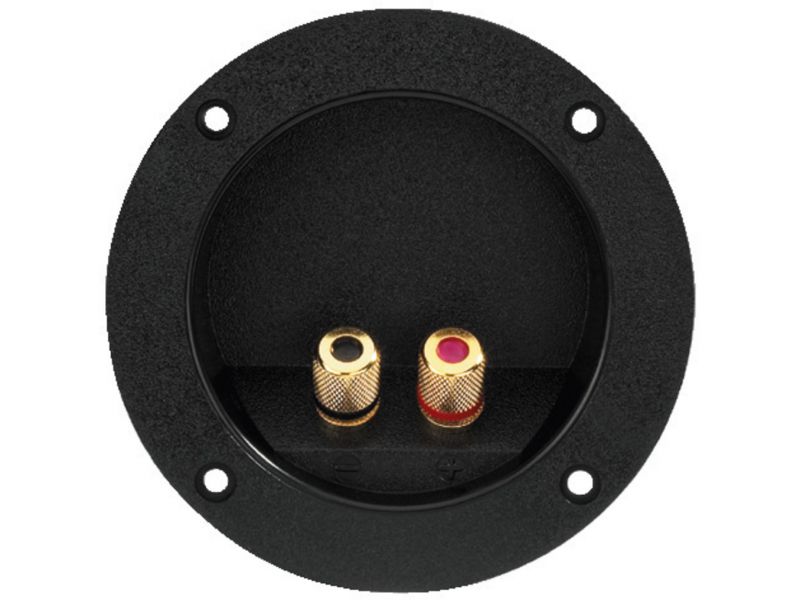 Speaker terminal Round With gold-plated all-metal connectors For screwing as well as for 4 mm banana plug Mounting cutout Ø 76.5 mm Manufacturer information: MONACOR INTERNATIONAL GmbH & Co. KGKonsul-Smidt-Str. 6828217 BremenGermanyinfo@monacor...