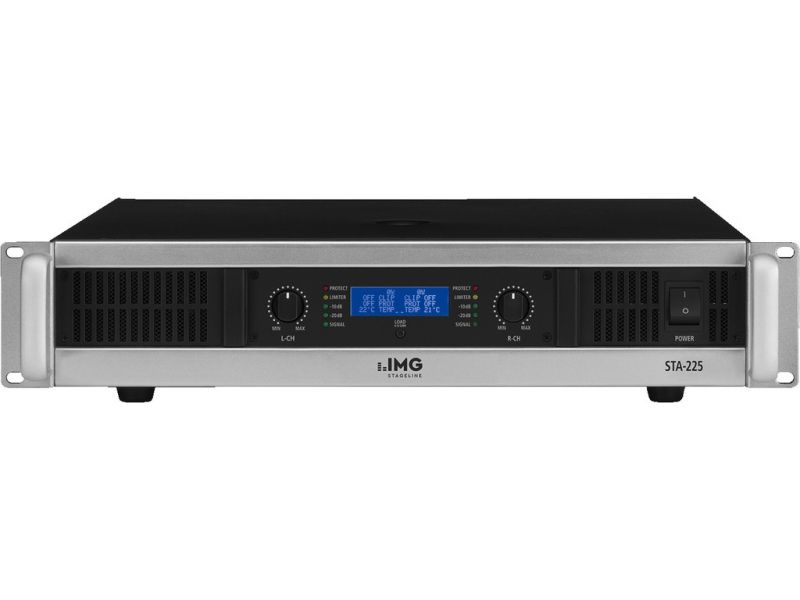 Stereo PA amplifier, 1,000 W, with integrated limiter. LCD for indicating temperature, operating mode, power 2 operating modes can be selected (stereo or bridged) Limiter function can be activated as required Temperature-controlled fan 2 level cont...