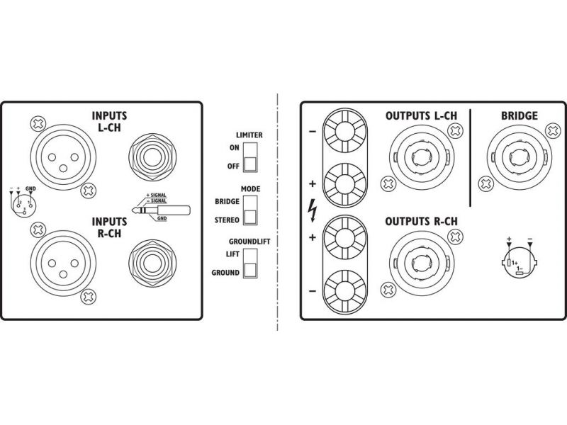 | Connections | 1 x 3-pole XLR L/R, bal.1 x 6.3 mm jack L/R, bal.3 x SPEAKER2 x pair of screw terminals |