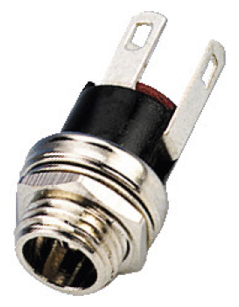 Low-voltage panel jack, 5.5/2.1 mm Central fixing for 8 mm drill hole With switching contact Length: 21 mm Manufacturer information: MONACOR INTERNATIONAL GmbH & Co. KGKonsul-Smidt-Str. 6828217 BremenGermanyinfo@monacor.com