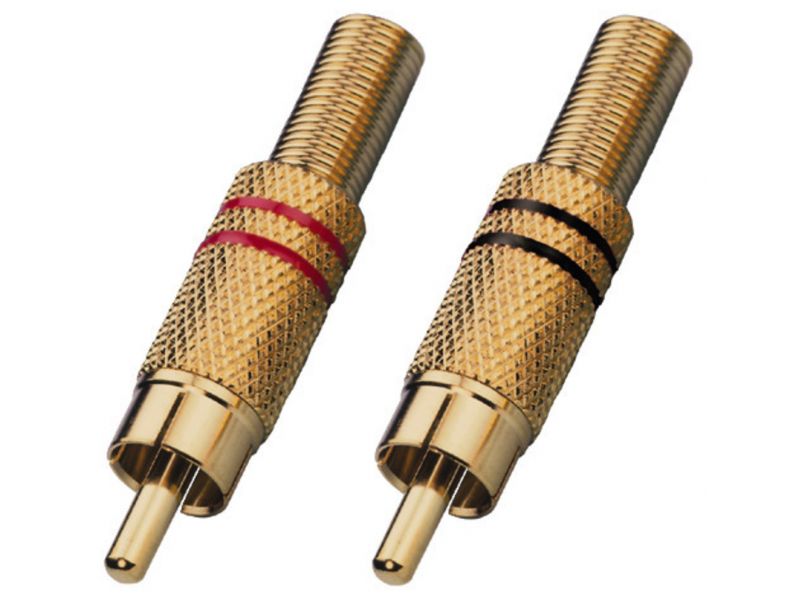 RCA plugs, gold-plated. Cable bending protection For cables: Ø 7 mm Red and black colour coding 2 pcs. Manufacturer information: MONACOR INTERNATIONAL GmbH & Co. KGKonsul-Smidt-Str. 6828217 BremenGermanyinfo@monacor.com