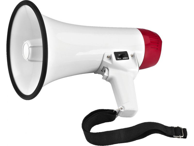 With our range of reliable megaphones, we provide the perfect solution for each application. A few basic selection criteria will help you to choose the right unit. The operating range surely is the most important one. Here, the following applies: with increasing sound pressure (in dB), the operating range of the megaphone increases, too. Furthermore, it is possible to choose between megaphones with integrated microphone, with hand-held microphone or units with an additional wireless microphone. Each megaphone from MONACOR is supplied with power by standard batteries. As an alternative, a few units also feature a 12 V connection. Size, weight and power supply are further selection criteria for choosing the right megaphone. With these comparison criteria, you will surely find the ideal megaphone meeting your individual requirements very quickly.
