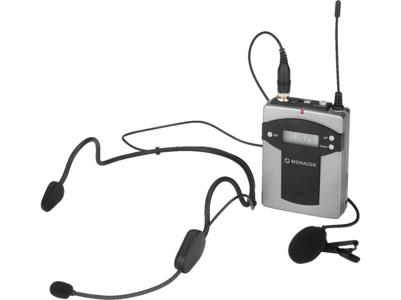 Multifrequency pocket transmitter, with UHF PLL technology. Matching portable amplifier systems of the TXA-1000 series, TXA-800 series. 1 headband microphone (omnidir. char.), 1 tie clip microphone (cardioid char.) 16 selectable UHF frequencies (86...