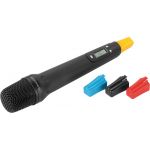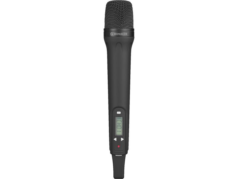 Hand-held microphone with integrated multifrequency transmitter, with UHF PLL technology. Matching portable amplifier systems of the TXA-1000 and TXA-800 series. Dynamic microphone cartridge, cardioid polar pattern 16 selectable UHF frequencies (86...
