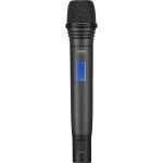 Hand-held microphone with integrated multifrequency transmitter, with UHF PLL technology. Dynamic microphone cartridge, cardioid polar pattern 800 selectable UHF frequencies (672.000-691.975 MHz), can be synchronised with receivers TXS-606, TXS-626...