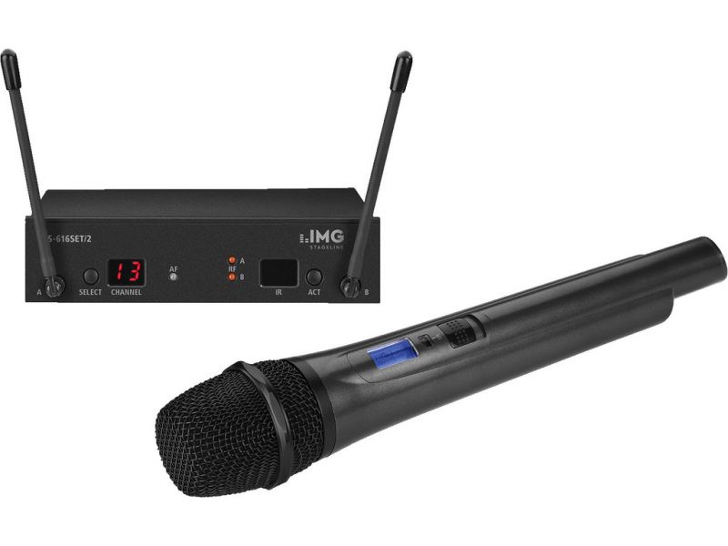 Multifrequency microphone system, with UHF PLL technology. 1 hand-held microphone transmitter, 1 receiver, 1 plug-in power supply True diversity system 80 selectable UHF channels (672.000-691.750 MHz) ACT function for transmitting selected frequenc...