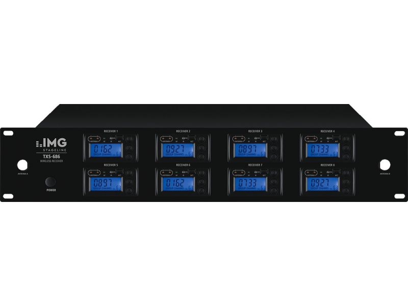 - LCD for indicating group/channel, RF receiving level, AF audio level and additional LED display for indicating antenna A/B, audio signal of each channel