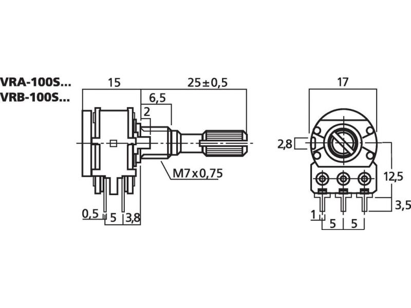 Potentiometer, stereo, 50 kΩ Logarithmic Slotted 6 mm shaft For 18-tooth push-on buttons Nut fixing and PCB solder contacts Manufacturer information: MONACOR INTERNATIONAL GmbH & Co. KGKonsul-Smidt-Str. 6828217 BremenGermanyinfo@monacor.com