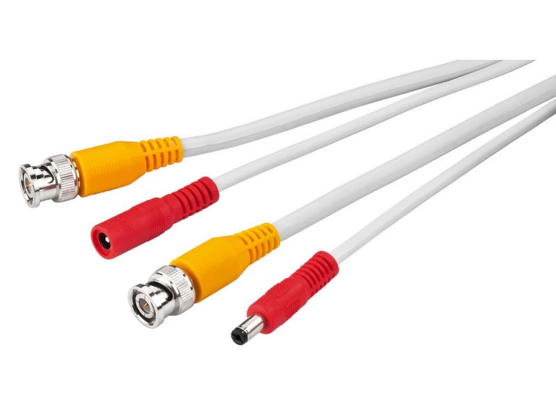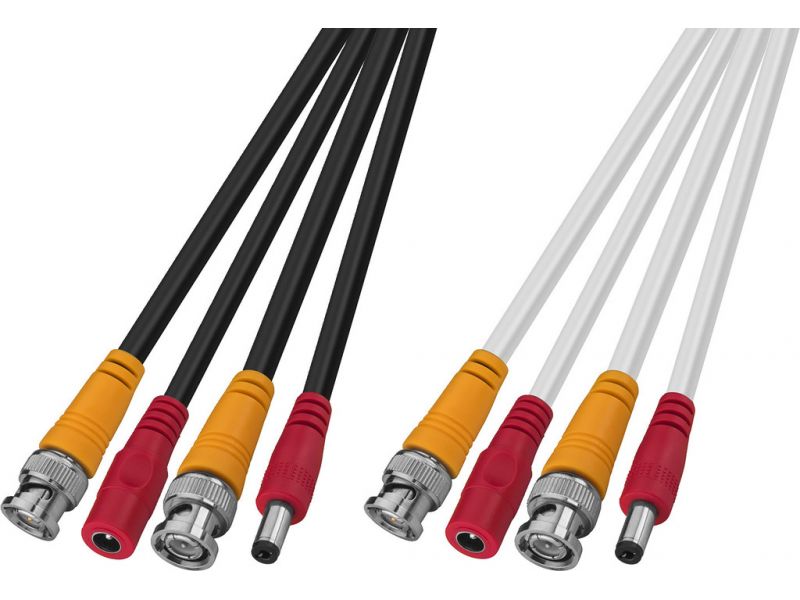 Video combination cable Particularly suitable for simultaneously connecting video signals and power supply to HD cameras 1 x BNC plug on both ends for video connection, cable material: 75 Ω RG-59/U 1 x low-voltage plug/low-voltage inline jack Ø 5.5/2...
