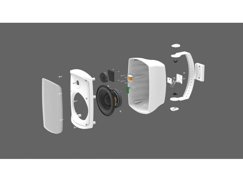 Pair of 2-way PA speaker systems Wall speaker with plastic cabinet in white 4 power taps as well as switchable to 8 Ω operation 13 cm (5") bass-midrange speaker and 12 mm (½") dome tweeter High sound quality and speech intelligibility Mounting bracke...