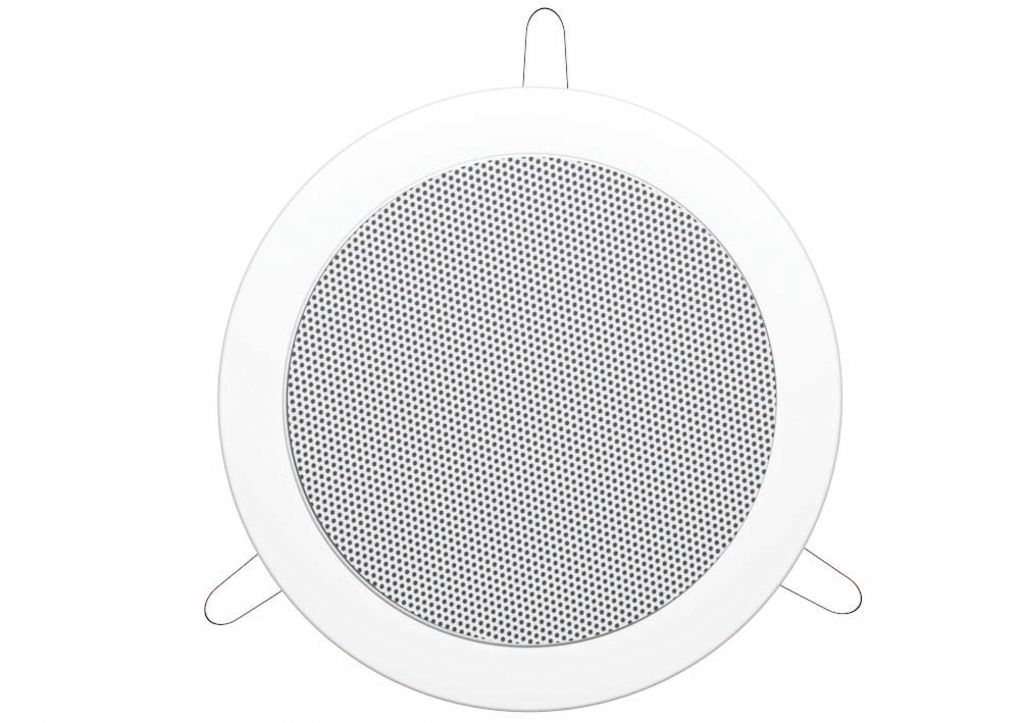 PA ceiling loudspeaker 100 volt transmission technology Speaker (13 cm) with high sound pressure and very good transmission range Moisture-protected speaker cone Quick mounting device Metal housing with metal protective grille 3 power taps via pressu...