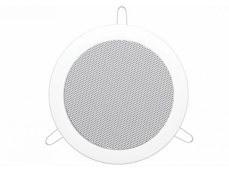 PA ceiling speaker 100 V transmission technology 2-way speaker system (13 cm) High sound quality and well-balanced frequency response, distortion-free transmission of 50 Hz signals also possible Quick-mounting device Metal housing with metal protecti...