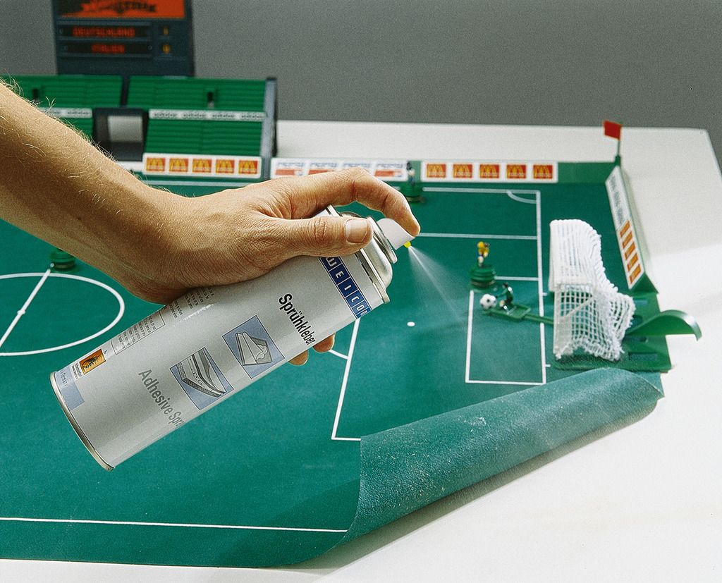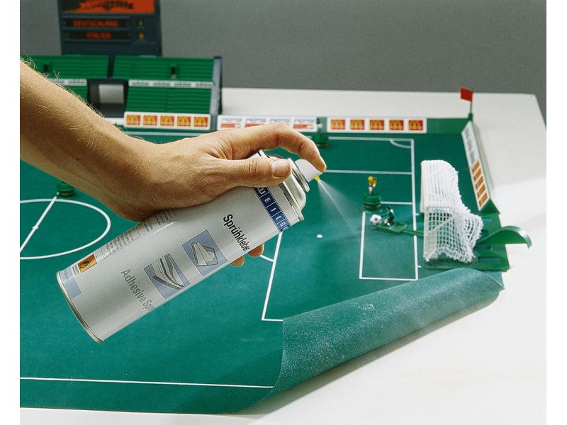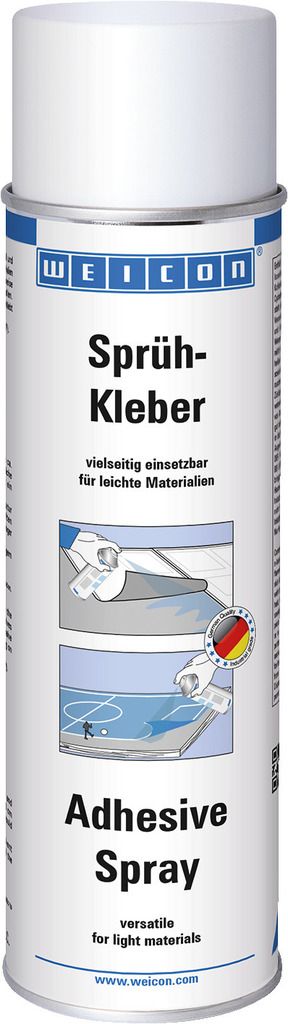 Spray adhesive, for general use. Glues together paper, carton, cardboard, wood, thin veneer, cork, leather, fabrics, felt, foam, rubber, foam rubber, plastic foil (except PVC and polyethylene) Particularly suitable for glueing hard foam (e.g. polys...